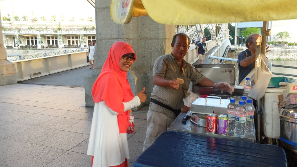 Dalam perjalanan kami juga bertemu dengan penjual es krim yang terkenal itu. Namanya Uncle Ice Cream. Kami membeli 2 potong es krim. Kalau di Indonesia namanya es potong hanya di kemas lebih menarik dengan harga yang relatif murah 1 dollar Singapura.