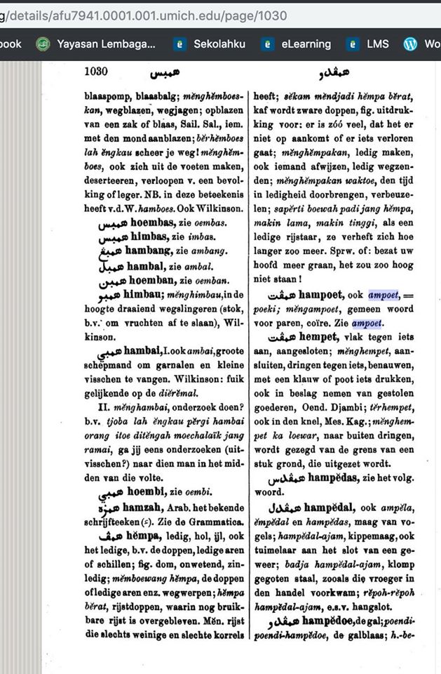 Saya sendiri tidak puas dengan hasil wikipedia tersebut, tapi dari sana saya mendapat pencerahan jika kata ini sudah digunakan sejak dari dahulu kala, maka mungkin kata ini masuk ke dalam kamus bahasa Melayu – Belanda. Negara kolonialis atau imperialis biasanya memang mempelajari bahasa negara-negara jajahan mereka. Hal ini tentunya untuk mempermudah komunikasi dengan pribumi yang awalnya digunakan untuk berdagang. Hingga saat ini, jika kita ingin menempuh studi lanjut master dalam bahasa Jawa, kita bisa mengambil kuliah di Universitas Leiden, Belanda.